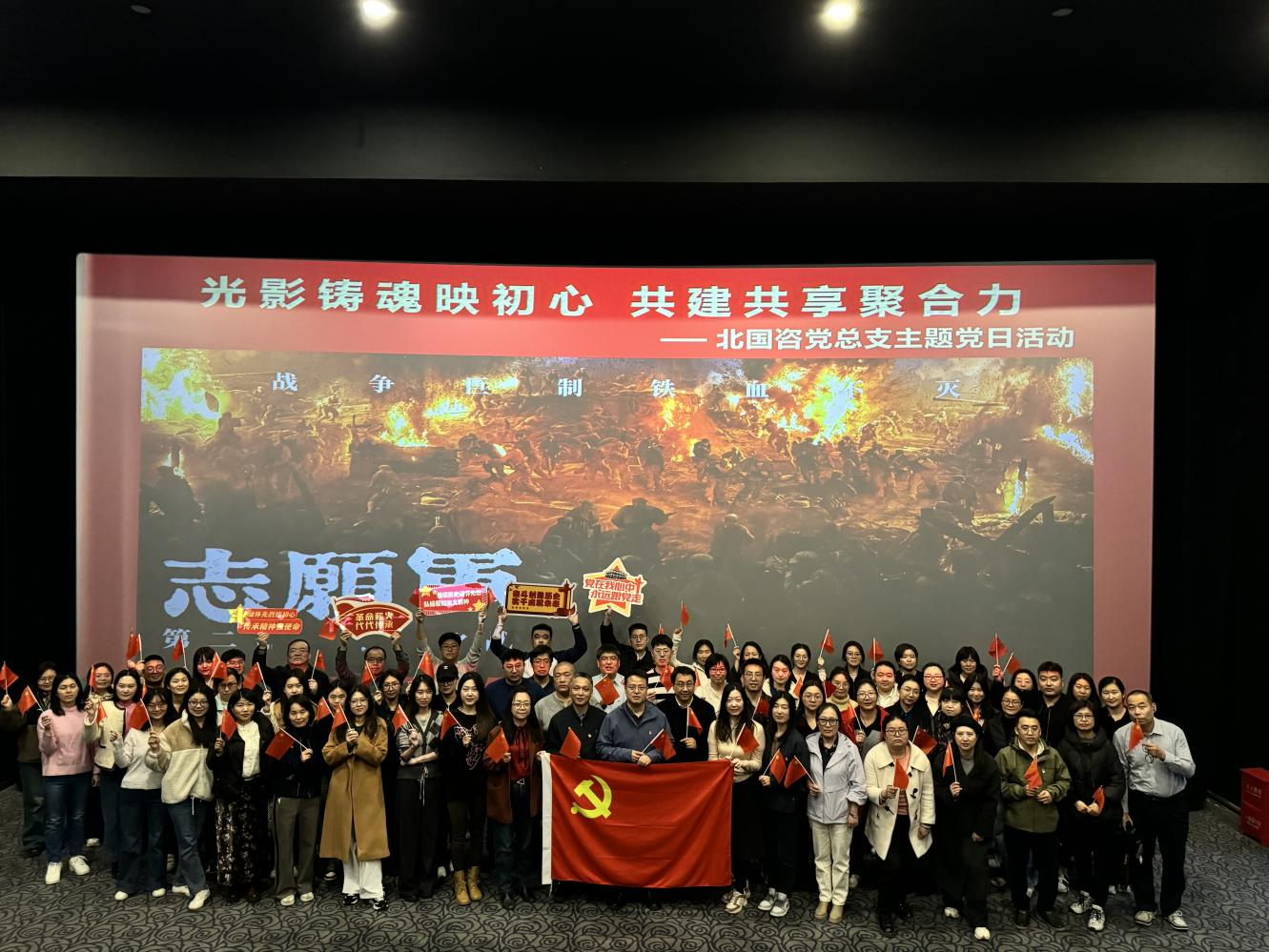 2024年11月18日下午,北国咨党总支开展“光影铸魂映初心 共建共享聚合力”主题党日活动,组织下属三个支部党员及入党积极分子观看红色影片。此次活动旨在通过观影学习,持续不断深入学习贯彻党的二十大精神,厚植爱国情怀,激发党员干部的责任担当,进一步促进支部间的共建共享、聚力合力。